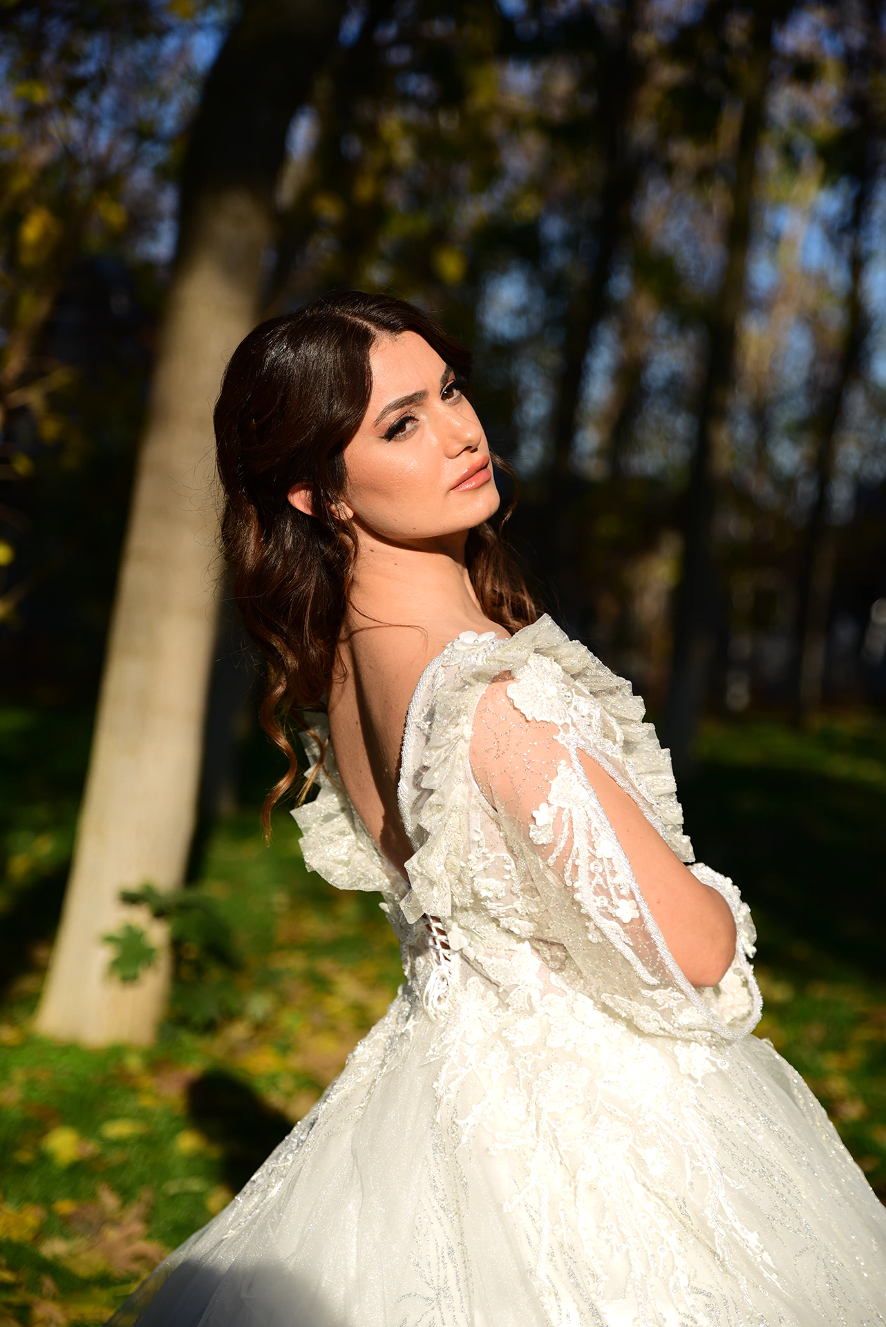 Özel tasarımıyla şıklığı ve zarafeti bir araya getiren bu gelinlik, ince işçiliğiyle göz kamaştırıyor. Akışkan kumaşı ve vücuda oturan kesimi, kusursuz bir siluet oluştururken, dantel işlemeleri ve ışıltılı detayları romantik bir dokunuş katıyor. Hafif yapısı sayesinde gün boyu konfor sunan bu gelinlik, en özel anlarınızda unutulmaz bir iz bırakmanız için tasarlandı. Klasik ve modern çizgileri buluşturan bu tasarım, hayallerinizdeki gelinlik olabilir!