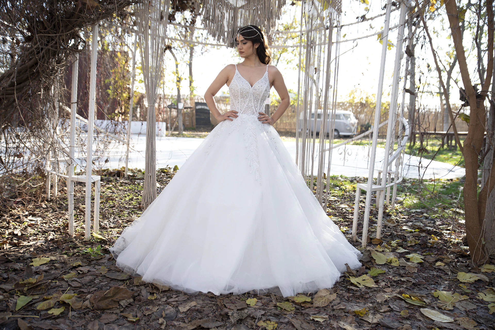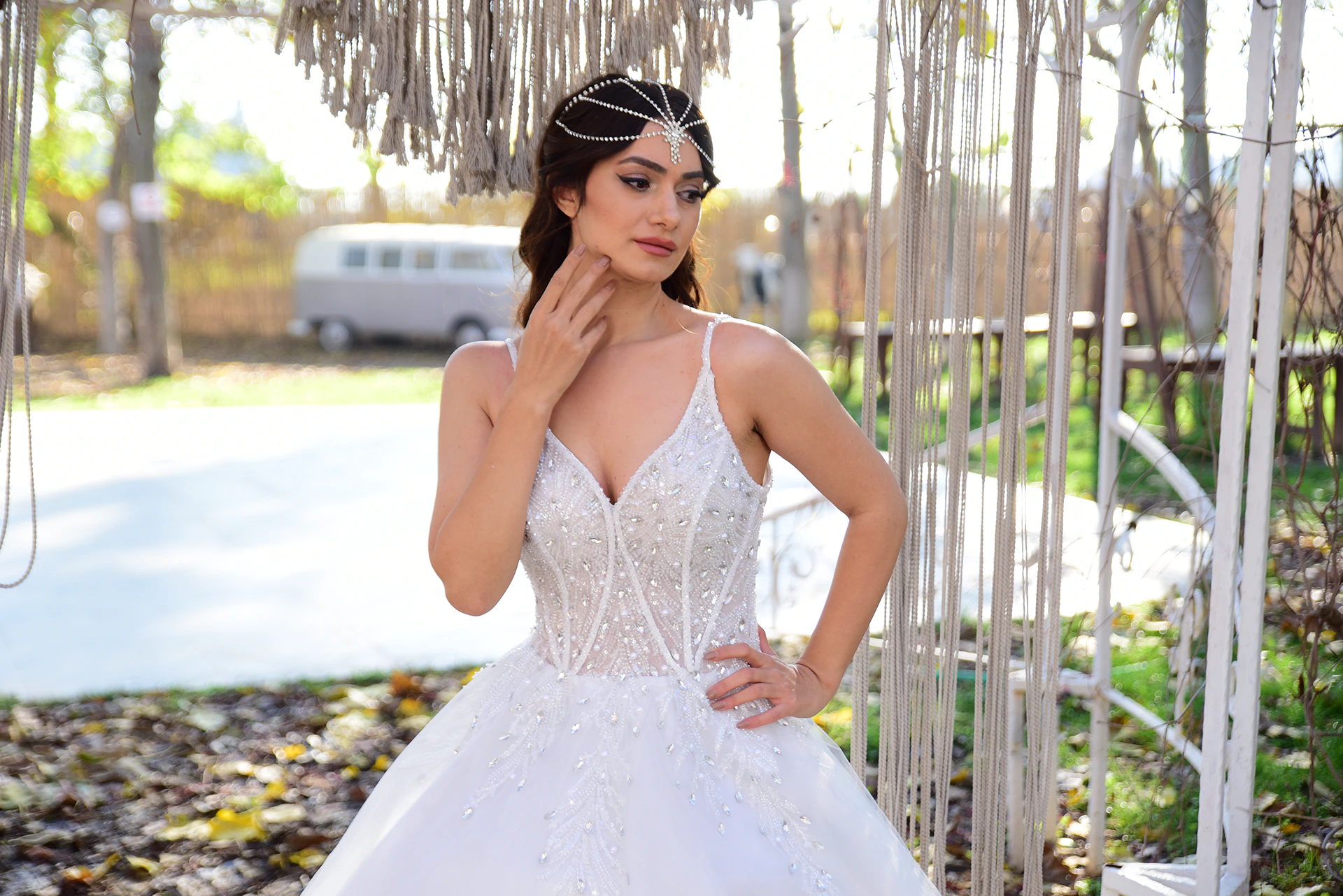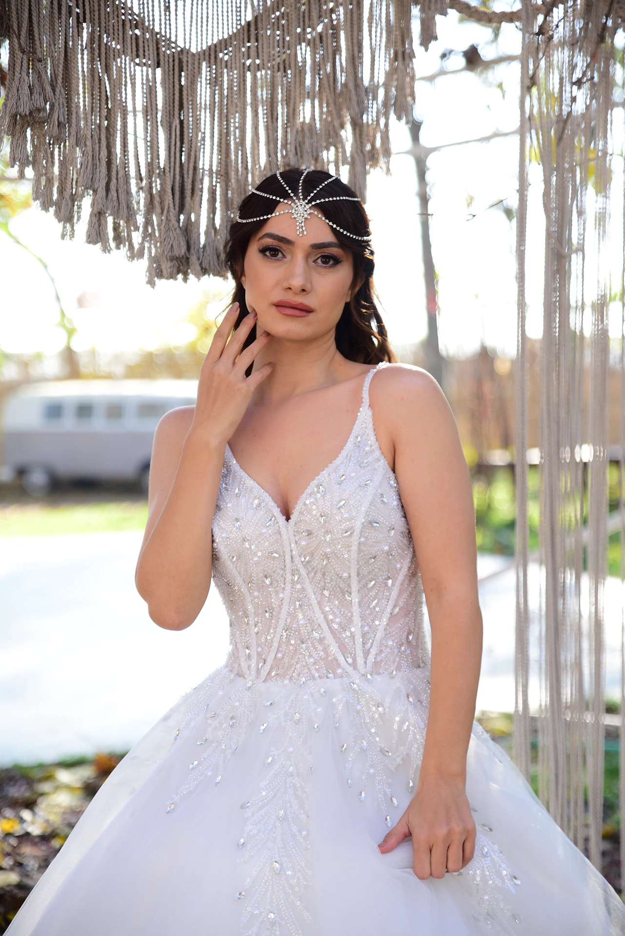 Zamansız şıklığın ve doğal güzelliğin mükemmel uyumunu sunan bu özel dikim gelinlik, sade ama etkileyici tasarımıyla öne çıkıyor. Hafif ve dökümlü kumaşı, gün boyu konfor sağlarken, ince işlenmiş detayları romantik bir hava katıyor. Göz yormayan zarif dantel süslemeleri ve akıcı siluetiyle hem modern hem de klasik bir duruş sergiliyor. Gösterişten uzak, saf ve etkileyici bir güzellik arayan gelinler için tasarlanan bu gelinlik, en özel anlarınıza eşlik edecek.