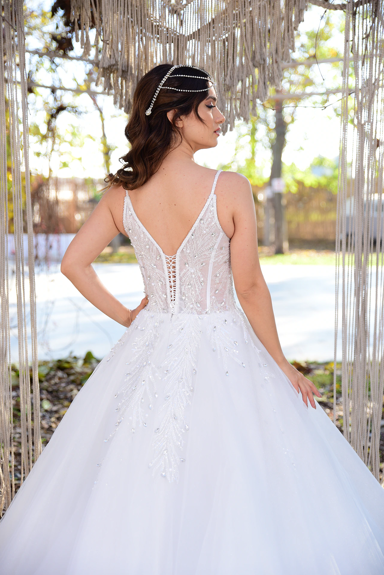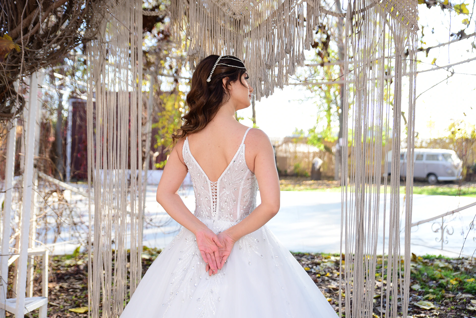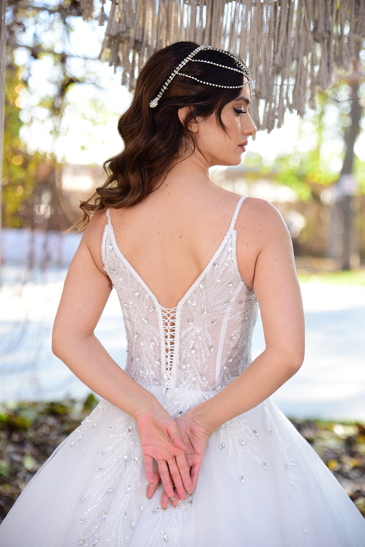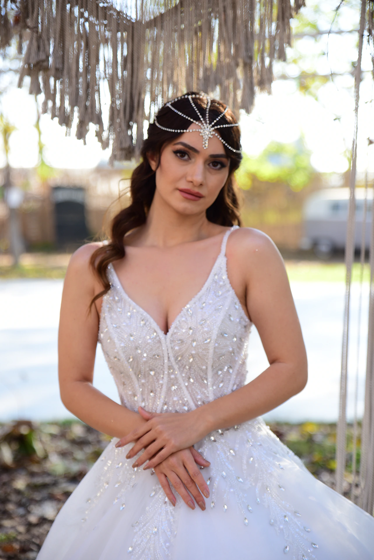 Zamansız şıklığın ve doğal güzelliğin mükemmel uyumunu sunan bu özel dikim gelinlik, sade ama etkileyici tasarımıyla öne çıkıyor. Hafif ve dökümlü kumaşı, gün boyu konfor sağlarken, ince işlenmiş detayları romantik bir hava katıyor. Göz yormayan zarif dantel süslemeleri ve akıcı siluetiyle hem modern hem de klasik bir duruş sergiliyor. Gösterişten uzak, saf ve etkileyici bir güzellik arayan gelinler için tasarlanan bu gelinlik, en özel anlarınıza eşlik edecek.