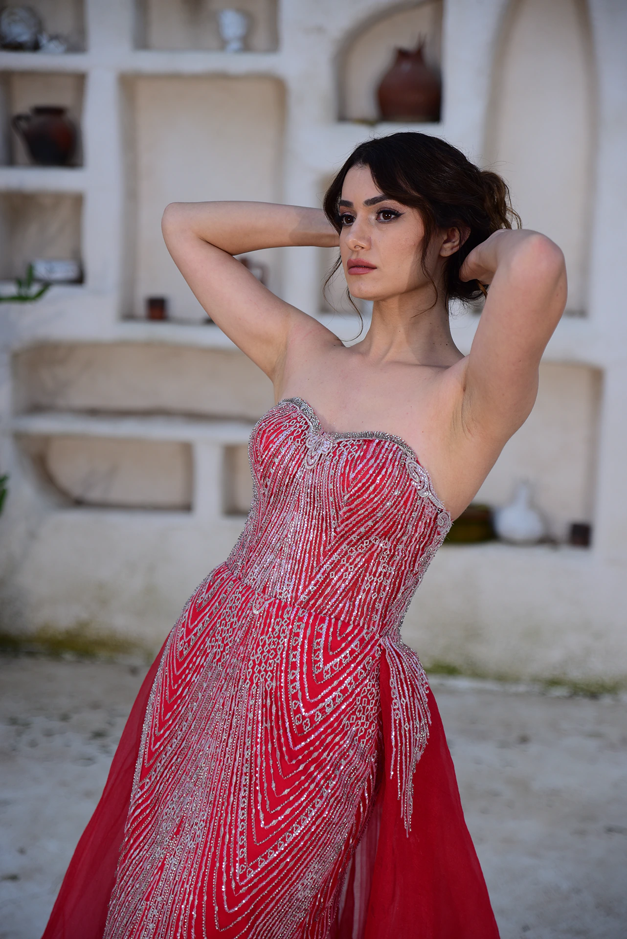 Bu özel dikim abiye, şıklığı ve zarafeti bir araya getirerek özel davetlerinizde göz kamaştırmanızı sağlıyor. Akıcı kumaşı, vücuda mükemmel uyum sağlayan kesimi ve özenle işlenmiş detaylarıyla hem modern hem de klasik bir dokunuş sunuyor. İnce işçiliği ve kaliteli malzemeleriyle konforu ön planda tutarken, zarif duruşuyla sizi her ortamda ön plana çıkarıyor. Özel ölçüleriniz doğrultusunda hazırlanan bu tasarım, unutulmaz anlarınıza eşlik etmek için özenle tasarlandı.